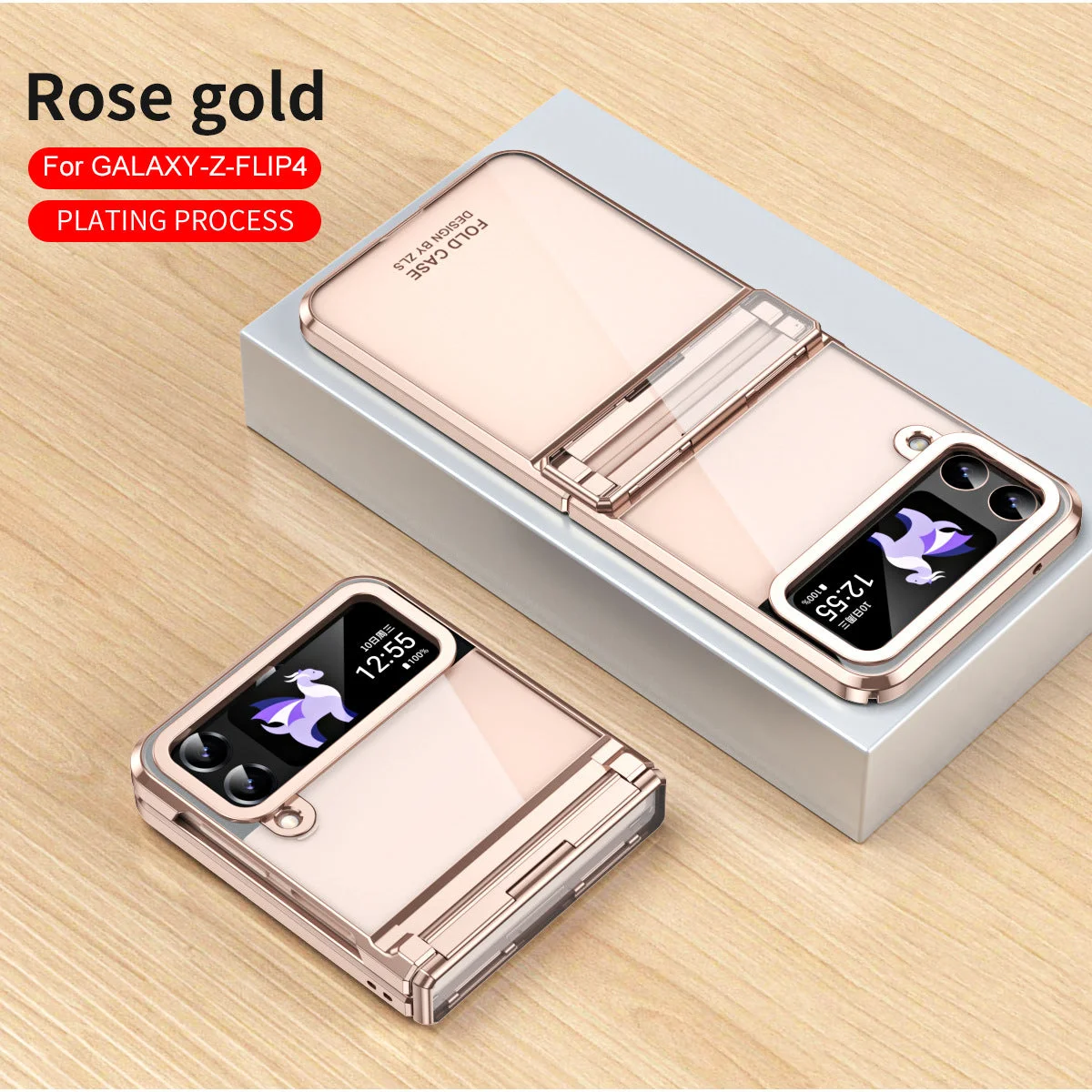 For Samsung ZFlip3/ZFlip4 Fold Screen Electroplating Transparent Hinge Full Inclusive Phone Case